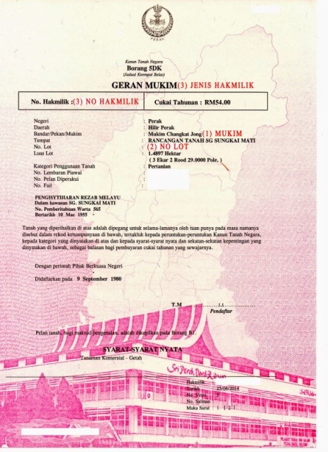 Kuncinya adalah keluasan lot tanah yang ditulis di dalam geran tersebut.