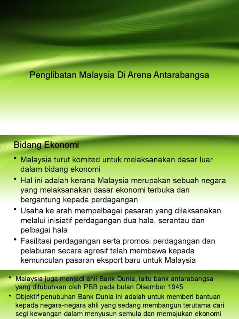 Penglibatan Malaysia Di Arena Antarabangsa from imgv2-1-f.scribdassets.com Hanya selepas 20 tahun perang ini berlaku barulah amerika mengiktiraf sumbangan malaysia dalam peristiwa ini. Bidang politik di malaysia dari perspektif islam dalam pemartabatan wanita di malaysia,31 serta shayuthy abdul manas, apa kata islam mengenai wanita berpolitik,32 membincangkan penglibatan wanita dalam politik dan juga pilihan raya. Selain itu, makalah ini juga akan menghuraikan peranan dan penglibatan malaysia melalui tan sri razali ismail dan tun dr. Download lagu pbb satpm mp3 gratis dalam format mp3 dan mp4. Mewujudkan kerjasama antara negara anggota dengan kanada dalam bidang perhutanan. Mengumpul maklumat tentang peranan malaysia dalam menyelesaikan konflik dunia. With our foundation secured, pbb group envisage an expansion throughout malaysia nationwide and into the south east asia (sea) region. Kejayaan menganjurkan perlumbaan bertaraf dunia menjadi realiti apabila litar formula satu di sepang berjaya disiapkan pada november 1998 dengan kos perbelanjaan sebanyak us$120 juta.